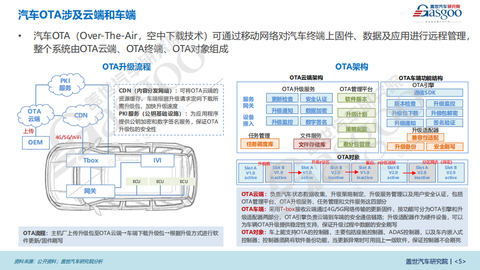 与此同时,随着安全问题的日益凸显,OTA升级的安全性也成为重要关注点,车辆通过网络与外界建立通讯后,将增大原本封闭汽车被攻击、挟持、信息泄露等潜在风险,建立OTA云管车的安全体系是必要条件。